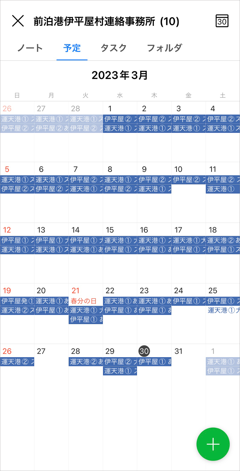LINE WORKSの運用に慣れたころから、カレンダー機能を利用して担当者全員が予約状況を正確に把握できるようにする取り組みもはじめました。切符売り場で自動車運送の予約を正式に受けるたびに積載できる残り台数をカウントダウンして、予定表の予約日には便ごとに「あと○台」と登録。その結果、お客さまから予約を依頼された社員はその場で空き状況を確認でき、オーバーブッキングをすることがなくなりました。