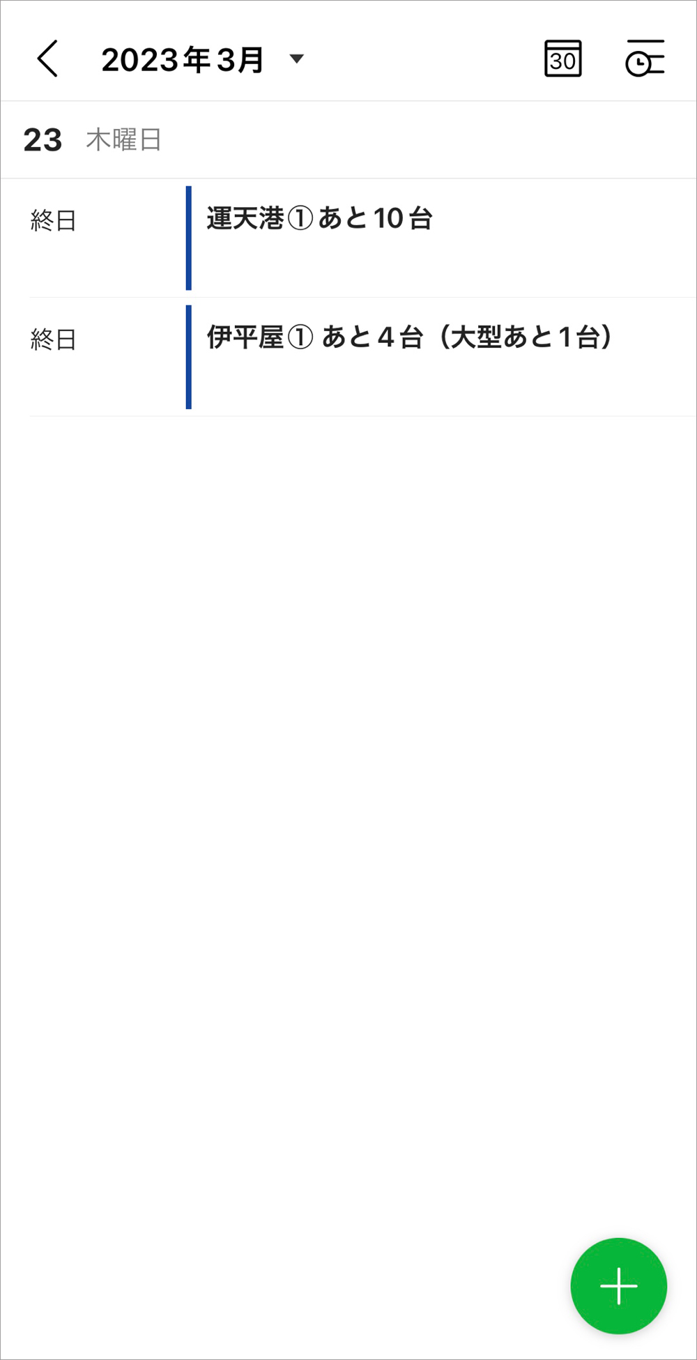 空き状況の確認にカレンダーを活用。便ごとにあと何台積載できるかが明確に分かり、オーバーブッキングをするおそれがなくなった