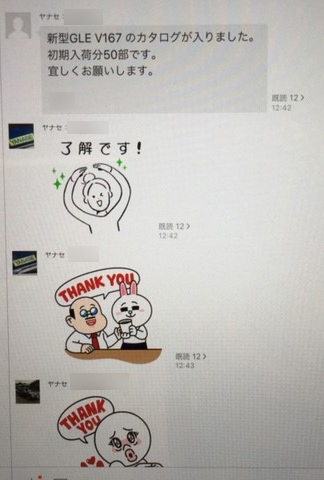 お客様が仕事をされている時間帯に「カタログをお送りしたのでご覧ください」などと電話をするのは気が引けますが、トークならそうした抵抗感を抱くことなく伝えられます。LINEで繋がっているお客様は「カタログを見ました。週末に支店へ伺います」などのレスポンスをすぐにくださる傾向があり、セールス活動のリードタイム短縮に効果があるとの報告が寄せられています。カタログはPDFをトークで送ることもできるので、新車種情報などを即時にお客様へお伝えできるようになりました。