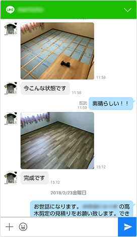Field employees praise on LINE WORKS because ‘LINE WORKS made smooth link between our business partners, since we can take photos right out of the field.’ When requesting repair, by using LINE WORKS, it is clearer to send a picture of the area to be repaired than to deliver in words. For example, if you want to exchange a ventilator installed in your room, verbal delivery of color or size may not match with what you prepared for. However, sending a picture of ventilator using ruler can deliver clear depiction of color or size of ventilator.