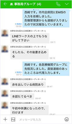The fact that we can easily send photos with LINE WORKS contributed to its implementation as well. During a large-scale earthquake, we can send the pictures of the medical aid box within the emergency aid center to let partners know which medical supplies are needed promptly and accurately.