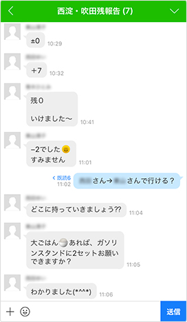Interim reports at 10 AM every day are conducted in a group chatroom of 3 couriers responsible for the same region and Mr. Iwasaki, the manager-in-charge. Even when we get a report that there is a deficiency of meals, couriers can now immediately respond among themselves. Compared to the analog method in the past, LINE WORKS is a remarkably innovative tool, which has dramatically transformed the efficiency of our work.