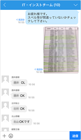 We are also utilizing LINE WORKS on company communication. For example, our employee ID card was renewed few days ago and had to turn paper to check roman characters of each employee. It took a while to check all of the employees’ since there were employees who were working at the field or the employees on consulting at the moment. For this reason, we took a photo of this paper and send it to the team members. With this tactic, what other team took for about a day to finish checking was only taken us about 20 minutes to complete. It is natural for people who use LINE, but there are still a few people who are not accustomed to this. In recent days, we are thinking about introducing IT tools to our customers with the purpose of reforming the work style. In order to process the reformation of the company work style, we would like to provide ideas of utilizing LINE WORKS in the perspective of the young colleagues.