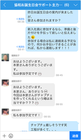 In order to verify LINE WORKS before the introduction, we collected targeted users from each department and division and promoted them to use the tool. During the trial period, we also encouraged the users to use as many features as possible to collect the actual usage experience. Ultimately, we could hear opinion from the users that Read notification at the chatting room and File sharing on the Drive have reinforced the overall working process more efficient than before. After the verification, we decided to introduce the tool earnestly.