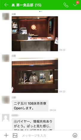 There are currently twenty-five employees of the Food Management Department, nine employees of the Information Systems Department and a total of fifty-seven employees are using LINE WORKS. Buyers also use LINE WORKS to share information in real-time. Specifically, they share new goods they found at the exhibits, conditions of retail stores while on business trips overseas, and display techniques of other company stores as future reference as well. The buyers also use the tool to share inspection results from business partner workshops.