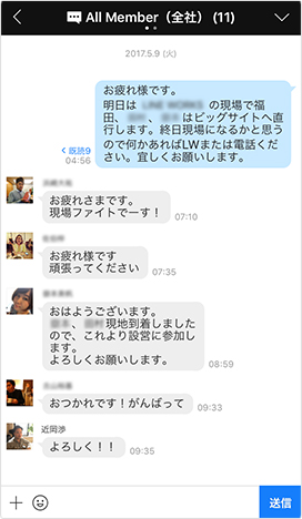 What has changed the most is that we now rarely use email or SNS for company communication. We did not force to quit using such tool. Instead, it vanished naturally, and started to use LINE WORKS as an alternatives. We encouraged employees to make chatting room per each project. This way, we can follow up the overall process of project simply by checking the messages inside the chatting room. This is very efficient way of working. When sharing information or document, we are also attaching the files to the chatting room. It also possible to instantly check the attached files at the chatting room using LINE WORKS viewer.