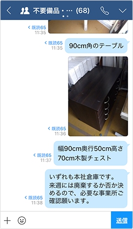 We also created a group to share supplies. Up to this point, if a single business place had closed and generated large quantities of supplies that had to be disposed of, it had been disposed of as industrial waste. In contrast, if we opened a new business office, we were buying the supplies we needed each time. It was a cost-effective procedure for both the disposal and the purchase. But now on when we get supplies that we don’t need anymore, we post a message to our group chat room, ‘Is there any office needs these supplies?’ to confirm or ‘I’m looking for ○○’ to transfer supplies among business offices. You can attach a photo using LINE WORKS so it is easy to recognize color and size. We are saving at least 10% by eliminating almost no disposal.