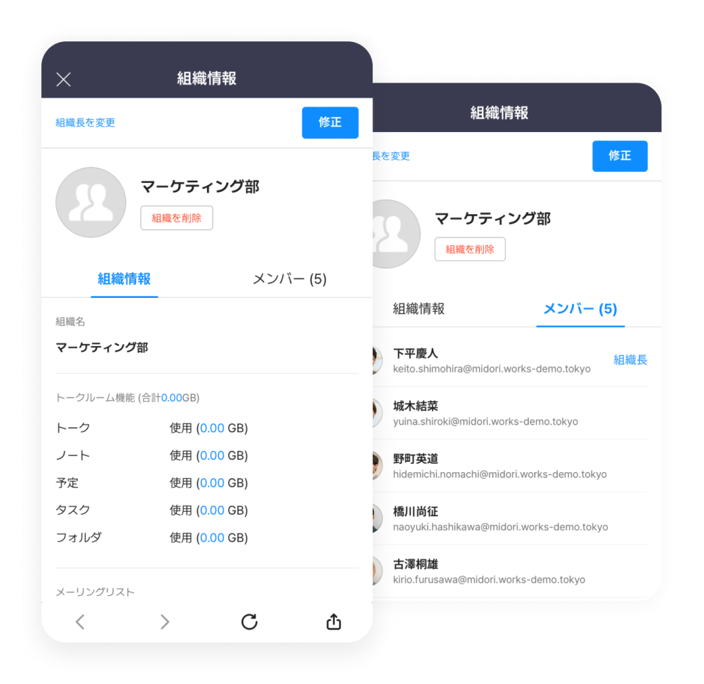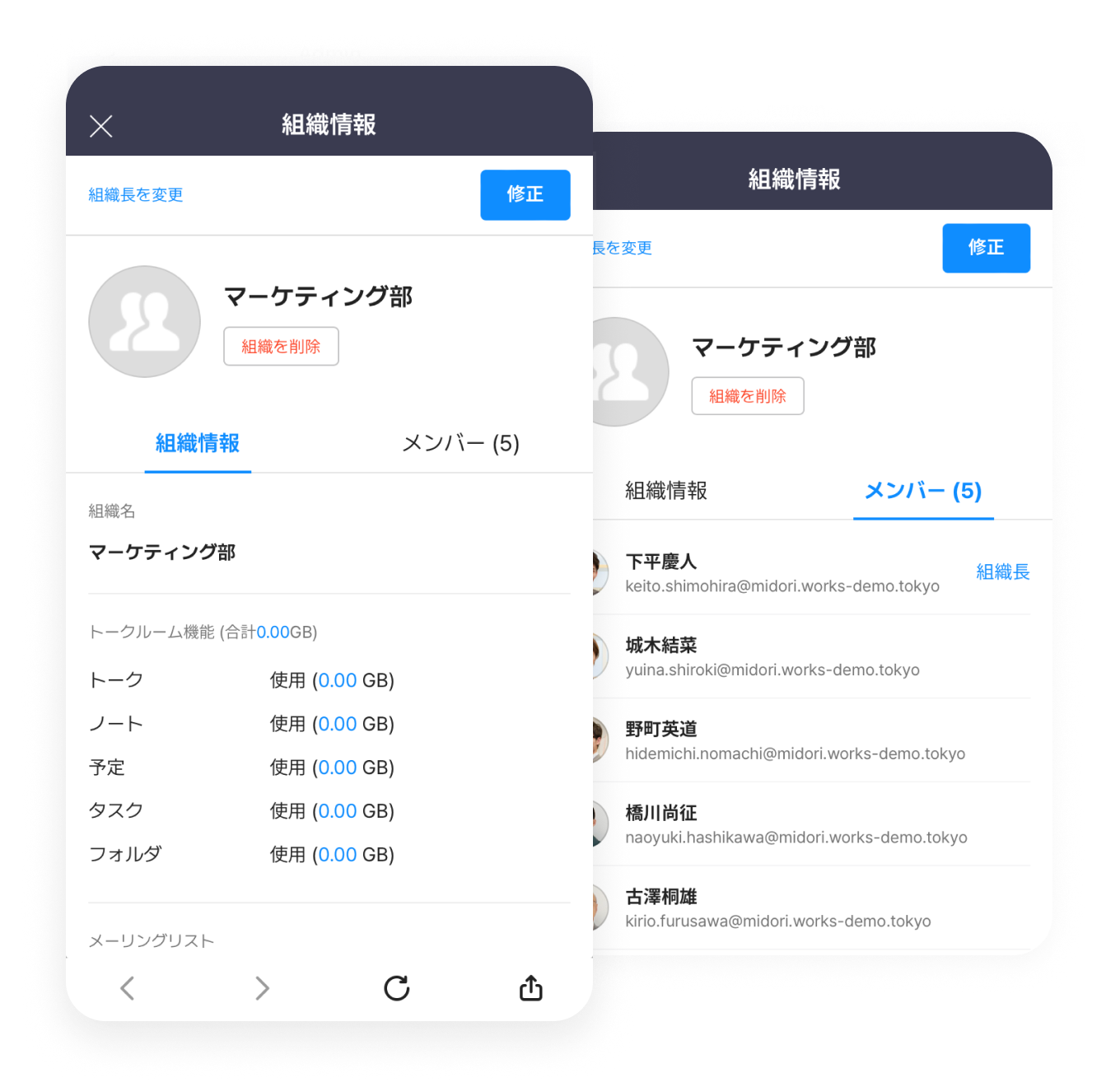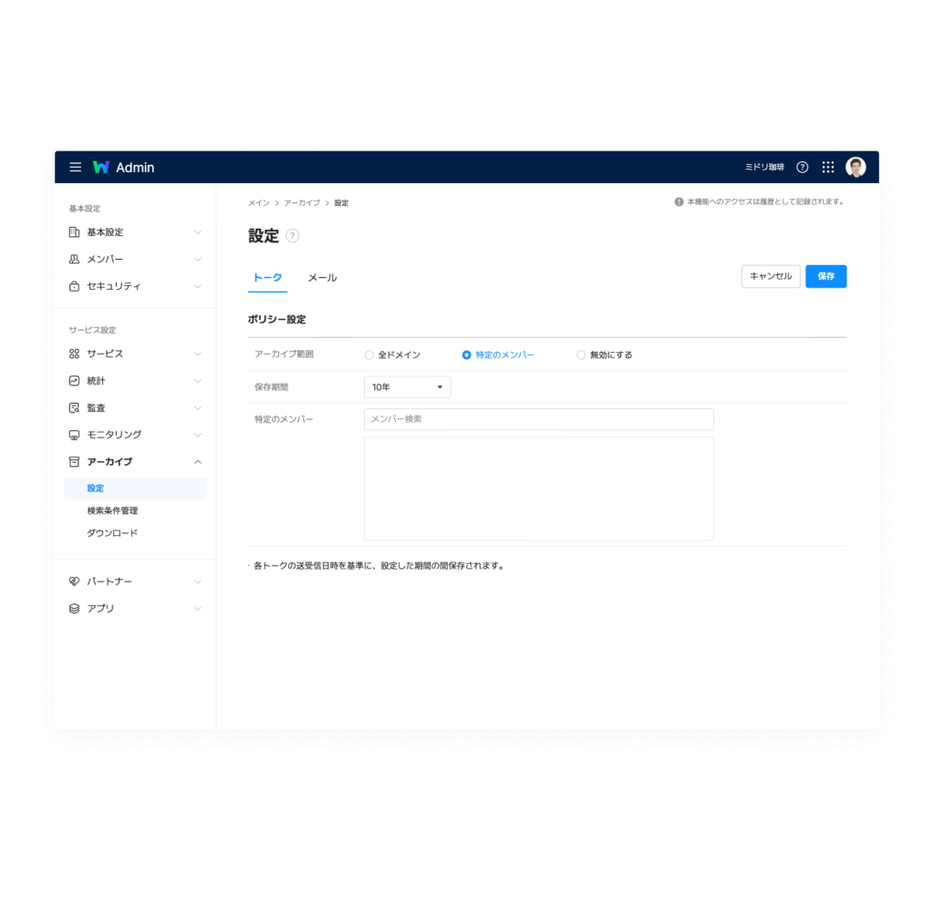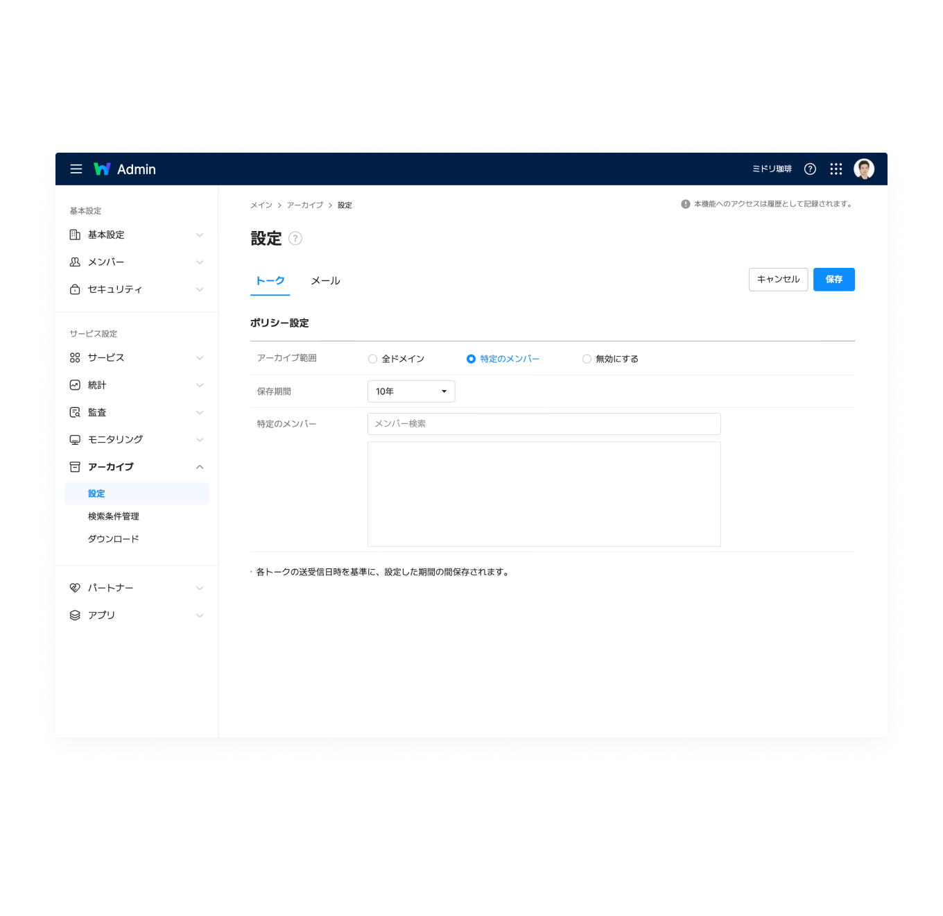 管理 管理 多彩な機能で様々な利用環境の管理をサポート フリー スタンダード アドバンスト トーク 掲示板 カレンダー タスク アンケート アドレス帳 メール Drive 管理 Bot Menu トーク 掲示板 カレンダー タスク アンケート アドレス帳 メール Drive 管理 Bot Team management メンバーや組織を一括管理 組織階層や役職、兼務の設定など、日本の企業文化に最適化された機能構成で社内システムとしての管理が行なえます。メンバー情報の修正や権限付与など一部の機能は、モバイルからも設定可能です。 LINE WORKSを一緒に使いたいメンバーを招待する Data auditing トラブルにも安心の充実した監査・モニタリング機能 監査対象のサービスを選択してユーザーの利用履歴をモニタリングし、日時、作業内容、IPアドレス、送受信者等の条件で検索してログを確認できます。 グループの作り方 グループの作り方 Mobility management 遠隔制御など充実のセキュリティで遠隔制御など充実のセキュリティでモバイルからの利用も安心 スマートフォンの盗難・紛失時の遠隔データ削除や、LINE WORKSから端末へのファイル保存制限、外部MDMとの連携によって特定端末からのみのログイン許可など、スマートフォンからのサービス利用のためにも充実のセキュリティ機能を備えています。 建設業現場でLINE WORKS活用方法 Data archiving 最大10年保管できる 大容量アーカイブ 最大10年分のデータが安全に保管され、企業のコンプライアンス対策に必要なデータを簡単に探すことができます。 (オプション商品) その他の機能について その他の機能についてはサービス機能一覧をご参照ください。 LINE WORKSはスマートフォン側にデータを残さない設定にできるのも重要なポイントでした。幹部から、紛失したときに情報が漏れたらどうするのかという心配の声があがりましたが、管理画面にて「ファイルダウンロード制限機能」を有効にすることにより、閲覧は可能だがスマートフォン側にファイル保存を制限出来ることを説明することでその心配が解消されました。 インタビューをもっと見る 株式会社富士通パーソナルズ 八坂 一弘さん 関連情報 # ブログ シャドーITは氷山の一角 個人で使うツールを業務で使ってしまうことで、社外への誤送信や、スマホの紛失・盗難による誤送信、情報の持ち出しなど、シャドーITを放置することはセキュリティやコンプライアンスの観点で様々なリスクを抱えることになります。 # 導入事例 株式会社ケーイーシー シャドーITを防ぐだけでなく、より厳格な労務管理が可能になりました。学習塾を運営する社員と学生講師のスピーディな意志疎通を実現。 # 導入事例 株式会社スズキリファイン アルバイトスタッフが100人を超えたのを機に、登録データの一括編集機能を備え、管理者向けの機能もより充実しているライトプランに切り替えました。 今すぐ無料ではじめよう!