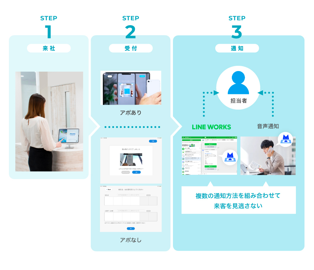 物流センターでドライバー入場の管理として守衛さんにiPadを持たせてペーパーレス化したり、シェアサロンでお客様が来店したら担当の美容師に通知が届いたり、イベント会場やゲームセンターでQRコードを設置しスタッフ呼び出しツールとして利用したりとオフィスの受付用途以外でも幅広くご活用いただいております。