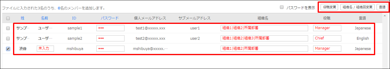 このとき、入力項目に問題がないメンバーのみ追加され、入力項目に誤りがあるメンバーは追加されません。