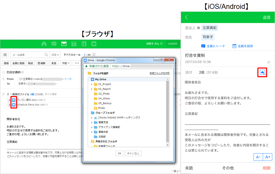 - 営業や研修で外出中の社員にメールで資料を送っている。