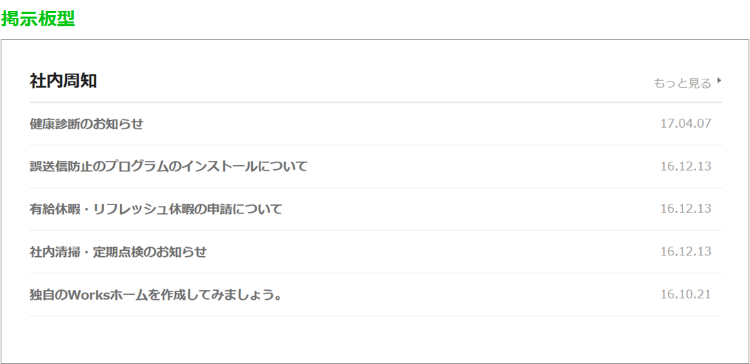 LINE WORKSホームの掲示板には、以下の表示タイプを設定できます。