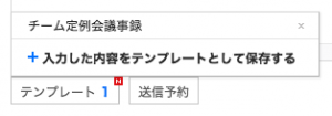 作成画面で内容を入力して[テンプレート]をクリック後、[+入力した内容をテンプレートとして保存する]をクリックしてテンプレートの件名を入力すると登録されます。
