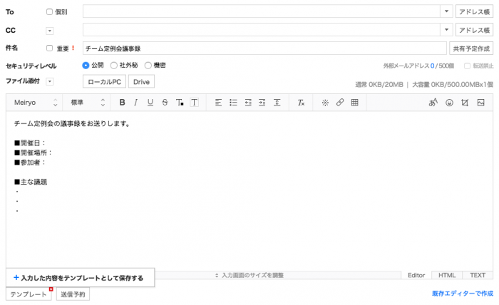 商品の紹介、お知らせ、会議の議事録のように、決まった内容を送る定型メールはどのように作成していますか?ゼロから書き起こすと時間がかかり、再利用するにも過去に送ったメールを探すのは手間がかかります。