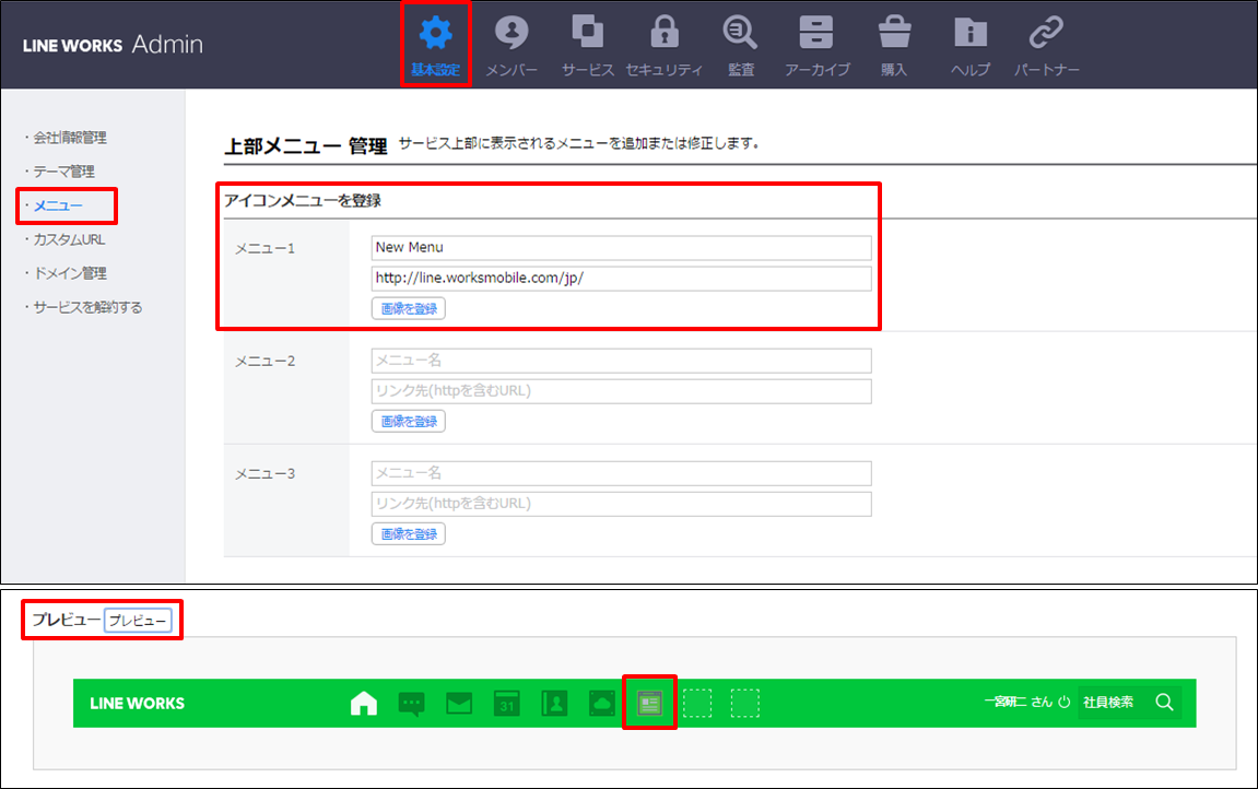 Guide LINE WORKS関連の様々なタイプの問い合わせをこちらで行うことができます。 ブログ 管理 メール トーク Drive アンケート カレンダー もっと見る アドレス帳 グループ はじめて ホーム Menu ブログ 管理 メール トーク Drive アンケート カレンダー もっと見る アドレス帳 グループ はじめて ホーム %e3%83%aa%e3%83%b3%e3%82%af リンク 管理 モバイル版アプリに独自メニューを追加 モバイル版LINE WORKSアプリのその他メニュー内には、他のモバイルアプリやWebサイトにアクセスするためのリンクを追加できます。毎日使用するLINE WO 2017.09.04 管理 ブラウザ版のメニューに独自アイコンとメニューを追加する 自社のウェブサイトや社内の精算システムなど、業務でよくアクセスするURLがある場合、LINE WORKSのメニュー追加機能を使うと便利です。 LINE WORK 2016.09.27 Drive 共有したファイルやフォルダのリンクを管理し、Driveでの共有をより安全に リンク共有したファイルやフォルダのリンクを管理(確認/変更/削除)することで、Driveでの共有をより安全に行うことができます こんなときに便利! 外部の人と資 2016.09.08 もっと見る 3 3