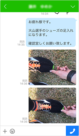 私は陸上選手やチーム関係者へのサポートを行っています。選手や監督の要望をヒアリングしたうえで、最適なシューズやウェアを製作し、提供する仕事をしています。特に陸上選手にとってシューズは、一番の武器になる非常に大事なものです。選手がシューズをはくところを見せてもらい、少しでも合わなければ、社内の技術者に情報を共有して新しいシューズをつくります。そのやりとりにLINE WORKSを活用することで、より迅速に対応できるようになりました。選手と気軽に写真やスタンプを交換できるようになり、距離感も縮まったような気がします。
