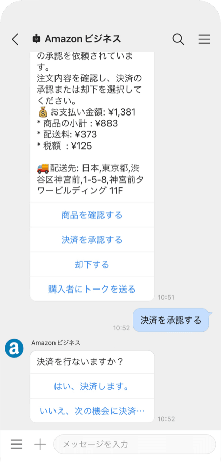 会話の流れからそのままAmazonビジネスで備品や消耗品を注文。