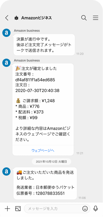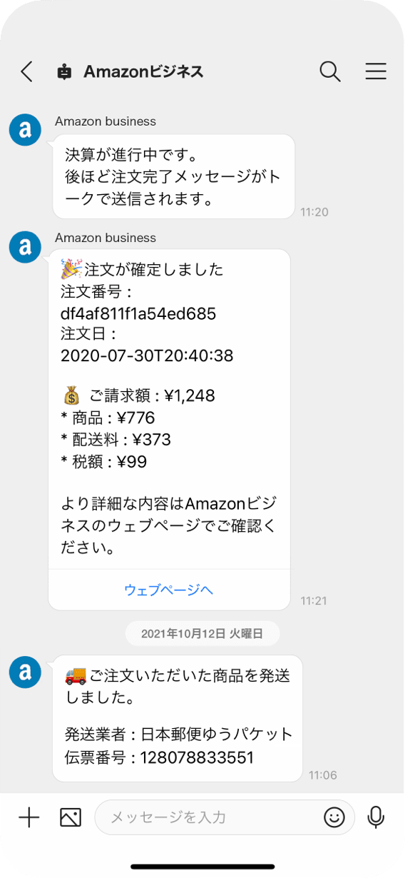 出荷予定が決まったら、AmazonビジネスBotから配送予定日や価格をお知らせ。5