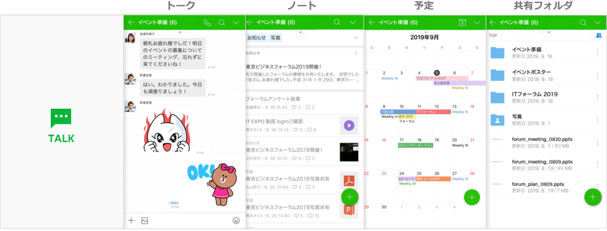 • 写真やファイル、予定も共有できる