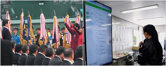 出場校への事前の業務連絡の周知や、大会当日の関係者間のリアルタイムな情報伝達やスコア速報に活用