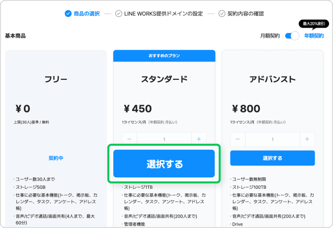 - * 月額契約・年額契約で料金が異なります。ご注意ください。