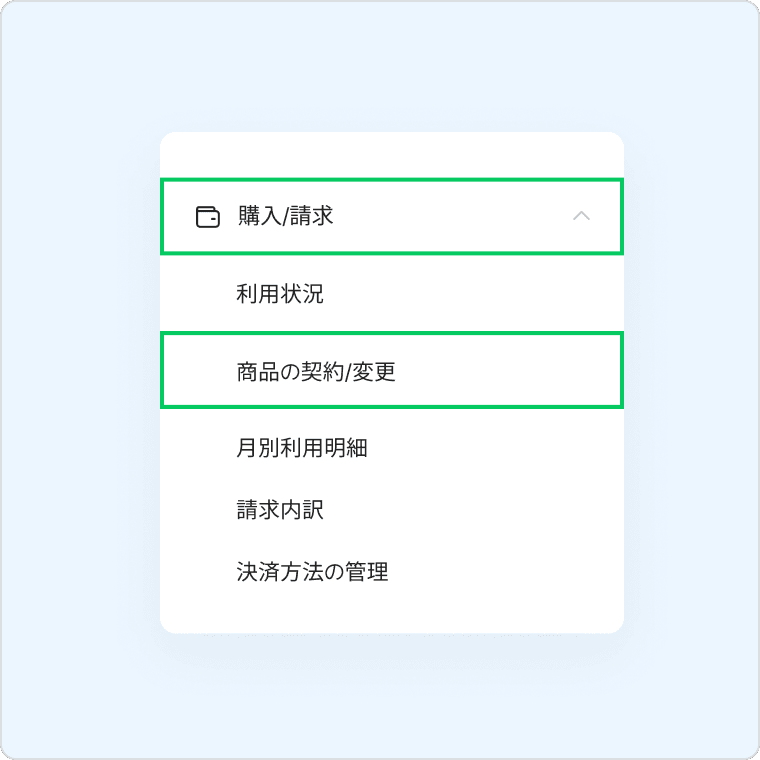クレジットカード払いのお客様は、管理者画面「購入 / 請求」-「商品の契約 / 変更」から追加できます。