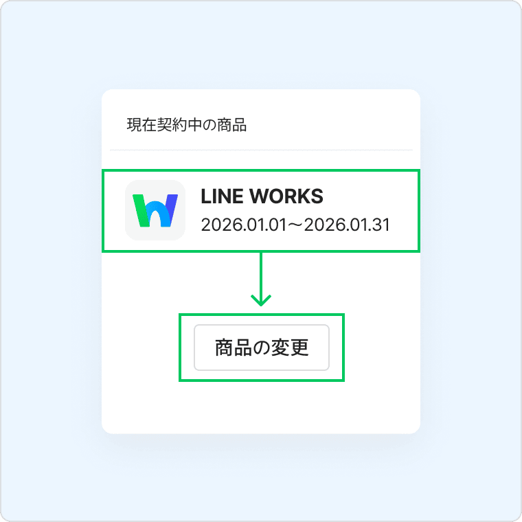 決済方法は、LINE WORKSで選択されている決済方法が適用されます。