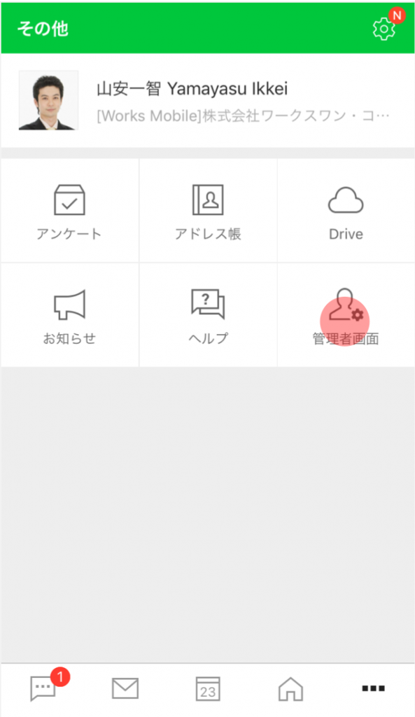 モバイル版アプリの管理者画面を開きます。