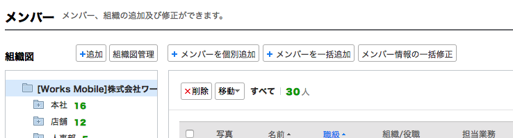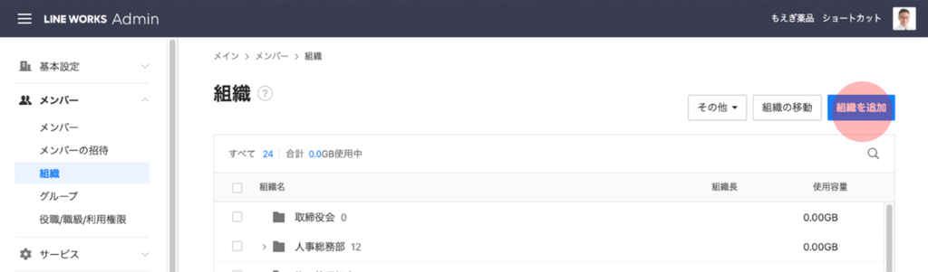 メンバーが増えてきたら、新しい組織を追加して整理しましょう。