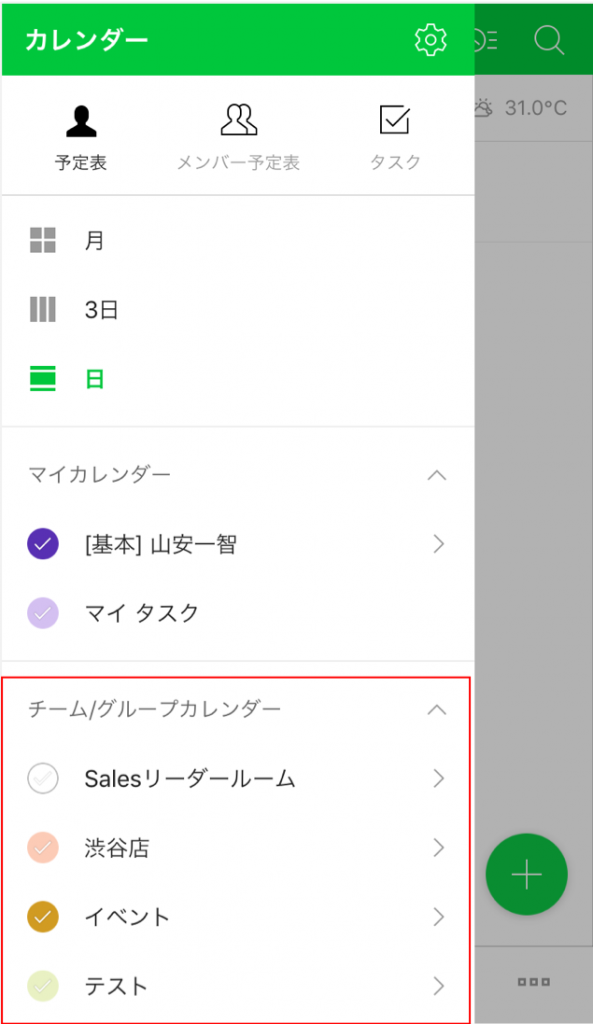 3.カレンダー機能からチーム/グループカレンダーを参照