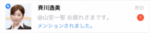 メンションされると、「メンションされました」というメッセージとともにトークルーム一覧で強調して表示されます。通知にも同様のメッセージが表示されます。
