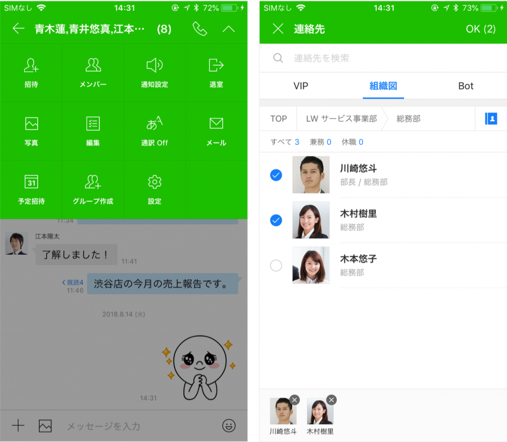 ビジネスシーンでは、組織を横断するプロジェクトワークに便利な機能です。組織単位で利用できるチームトークルーム以外に、任意のメンバーで「グループ」を作成し、グループトークルームを利用できます。