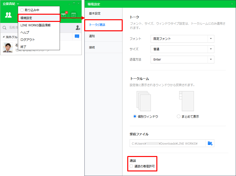 もしPCで通話したくない場合は、PC版アプリ [環境設定] > [トーク/通話] > [通話の着信許可] のチェックを外してください。