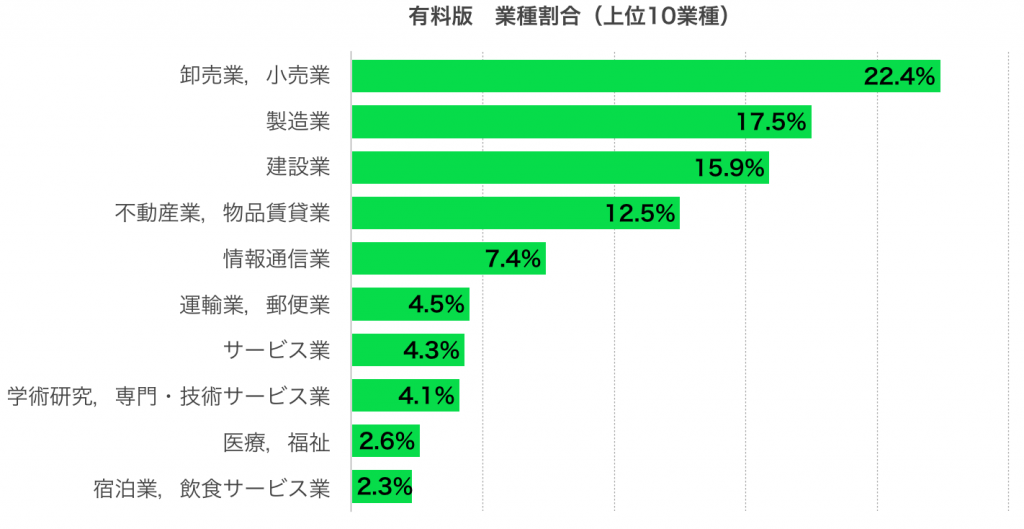 有料版ユーザーは、「小売」「製造」「建設」が上位に