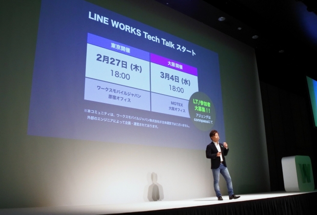 「『LINE WORKS Tech Talk』という、LINE WORKSの技術者向けコミュニティが活性化しています。導入企業、パートナー企業、SIerの技術者の方々に、新たなツールを考えていただくコミュニティです。ご興味のある方はぜひご参加いただければと思います」
