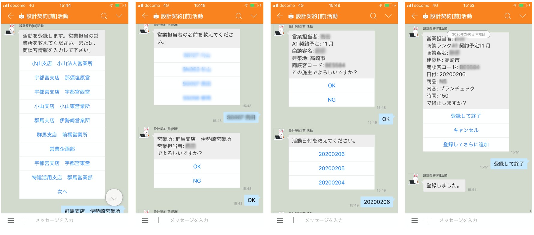 チャットボットからの質問に答えていくだけで活動管理ツールに活動内容が反映