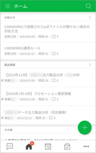 さらに、商品の売上状況や生産計画、販促キャンペーンなどの情報を「LINE WORKS」上のホーム画面に集約。外出中の営業社員が、スマートフォンを活用し、社内情報にアクセスできる環境を整備しました。