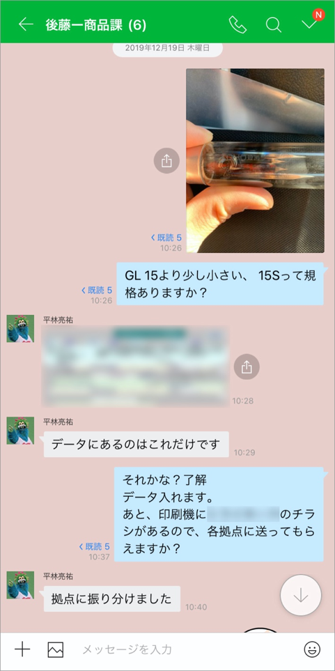 歯科関連商品は多種多様で、同一商品でも規格が異なるものがあります。そのため、商品課の社員が、営業社員から商品に関する問い合わせを受けた際、電話ではどの商品を指しているのか正確に伝わらないケースがありました。「LINE WORKS」導入後は、スマートフォンで撮影した商品や部品の写真をチャットで共有することで発注ミスの減少につながっています。