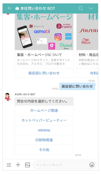 AIアシスタント作成ツール「PEP(ペップ)」※ を用いて、社内の問い合わせや資料探しなどに自動応対するチャットボットを作成し、「LINE WORKS」に連携。店舗から本社への問い合わせが大幅に減少し、業務効率向上に貢献しています。