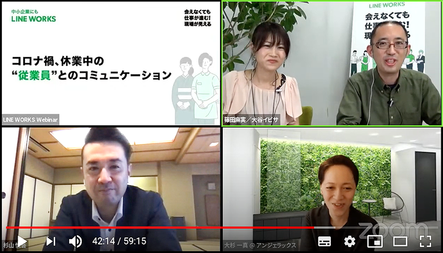 大杉氏:東京の従業員はほぼ自宅待機。一方で長野の店舗の従業員だけ働く状態でした。この不平等感をどうマネージメントするかが課題でした。実践した取り組みとしては、職業訓練として、オンライン研修を行いました。「LINE WORKS」での連絡は、トピックごとにトークを分けられるのが良く、細かくコミュニケーションをすることができます。なお、先の見えない状況下で会うことができず、離れている従業員の不安解消のため、定期的にオンラインで経営陣から状況とwithコロナの方針を共有し、距離感を埋めることができたと思います。