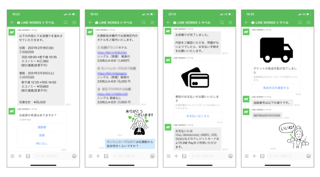 ■ 「LINE WORKS トラベル(仮称)」で可能になる各種出張手配