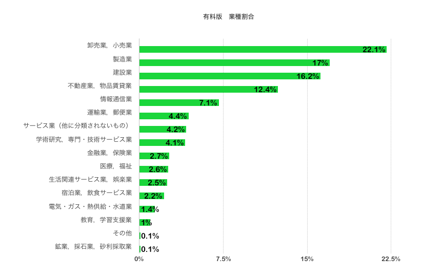 「LINE WORKS」有料版導入企業の業種割合TOP3は、昨年と変わらず、1位「卸売業、小売業」2位「製造業」3位「建設業」となっております。