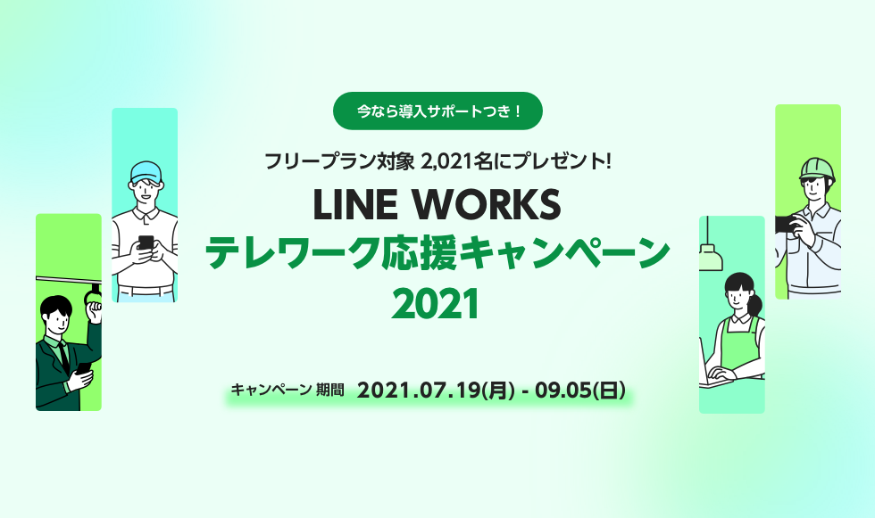 店舗や屋外など現場での仕事やオフィスでのデスクワークなど、世の中には多種多様な働きかたがあります。「LINE WORKS」は、現場に強いビジネスコミュニケーションツールとして、どこにいてもどのような働きかたをしていても仕事がすすむことを目指してきました。この度「テレワーク・デイズ2021」に参加し、「LINE WORKS」を活用したテレワークの実現を目指し、「LINE WORKS テレワーク応援キャンペーン 2021」を企画いたしました。