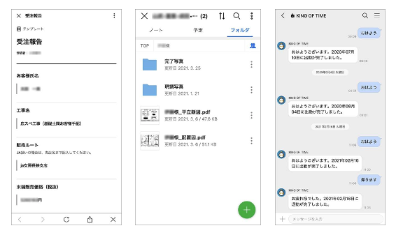 ■フォルダ機能で資料を顧客ごとにクラウド共有、離れた現場スタッフをリアルタイムでサポート