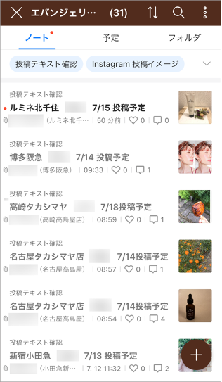 右:インスタグラムへの投稿内容をノートに投稿し、事前にチェック