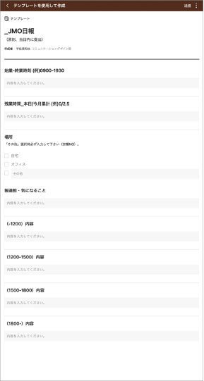 左:テンプレートで日報を入力し、グループトークで共有