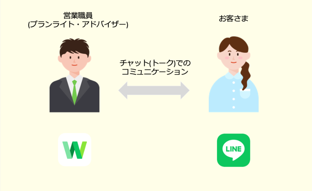 先進的な保険商品と質の高いサービスを提供するマニュライフ生命では、新型コロナウイルス感染症の拡大により保険の相談やお申込へのオンライン対応へのニーズの高まりを受け、非対面の相談を希望する顧客や遠隔地に居住する顧客が利用できるオンライン面談システムを導入するなど、多様な生活習慣への適応と顧客の利便性向上に向けた取り組みを始めています。これまで、営業職員と顧客の連絡は、電話/メールで行われていましたが、コミュニケーションアプリ「LINE」とつながる「LINE WORKS」を営業職員に導入することで、顧客はLINEでのコミュニケーションを選択できるようになります。オンラインでのコミュニケーション手段を拡充し、さらなる顧客の利便性向上を目指しています。
