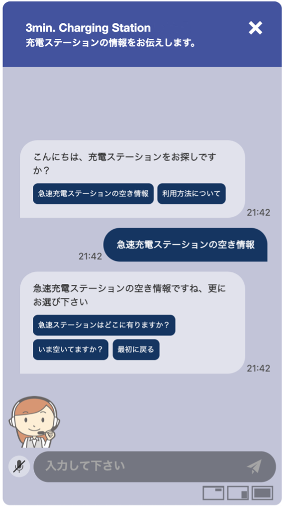 右:見やすいWEBチャットボットで、充電ステーションの空き状況が確認可能に