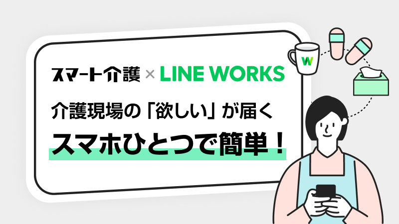 両社は、昨年11月の「LINE WORKS」のセールス&サポートパートナー契約締結時※1より、「LINE WORKS」上で「スマート介護」を利用いただけるよう、サービス連携の実現に向けて協働してまいりました。