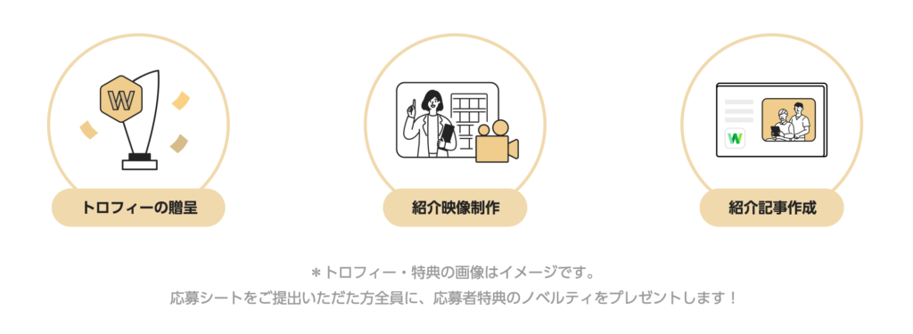 トロフィーの贈呈、さらに各受賞団体を紹介するための取材および動画撮影を行い、映像や記事をワークスモバイルジャパンが運営するメディア上で紹介いたします。